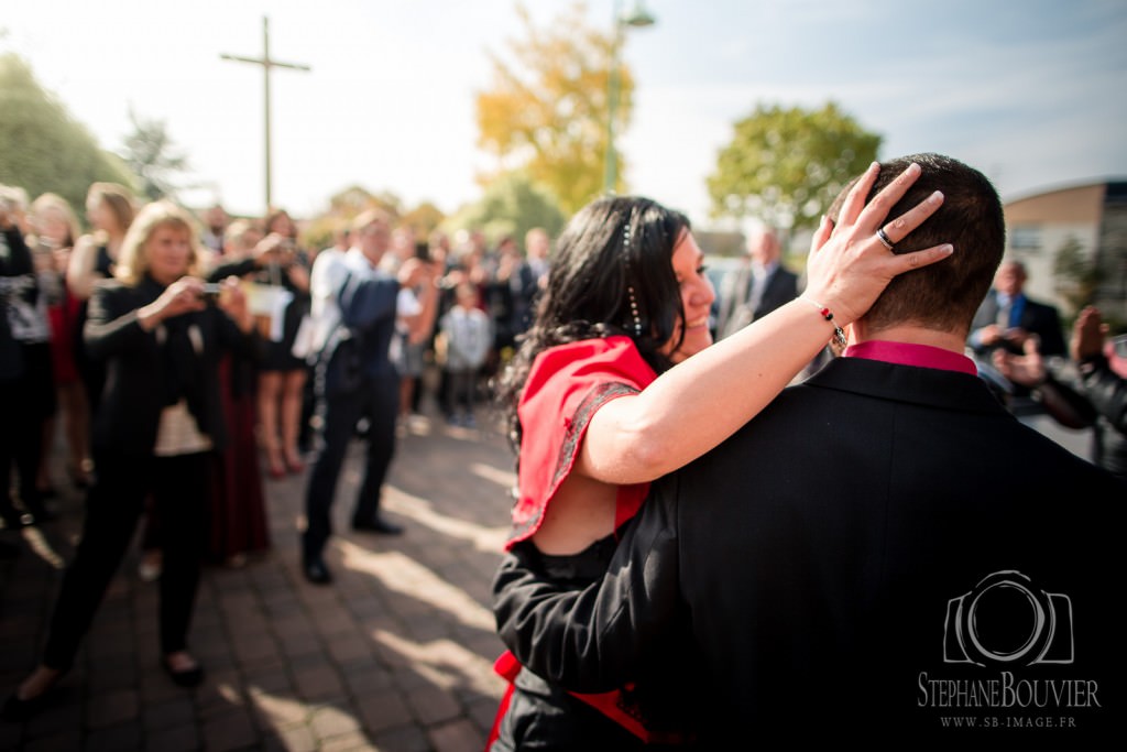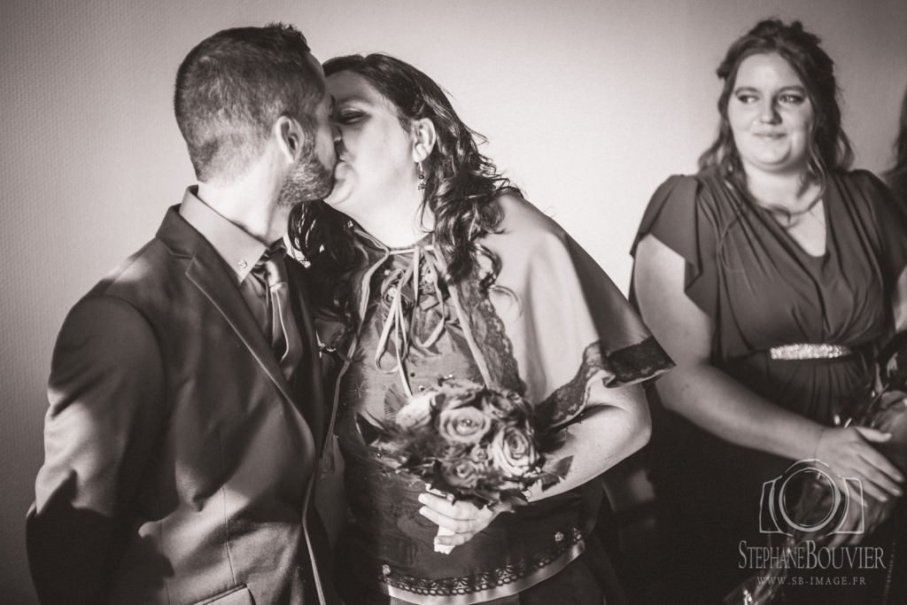 C’est sous le vrombissement des mécaniques de leurs amis motards que David et Graziella se sont marié à Loyat. Graziella qui avait choisi une robe de mariée originale aux couleurs de sa moto.